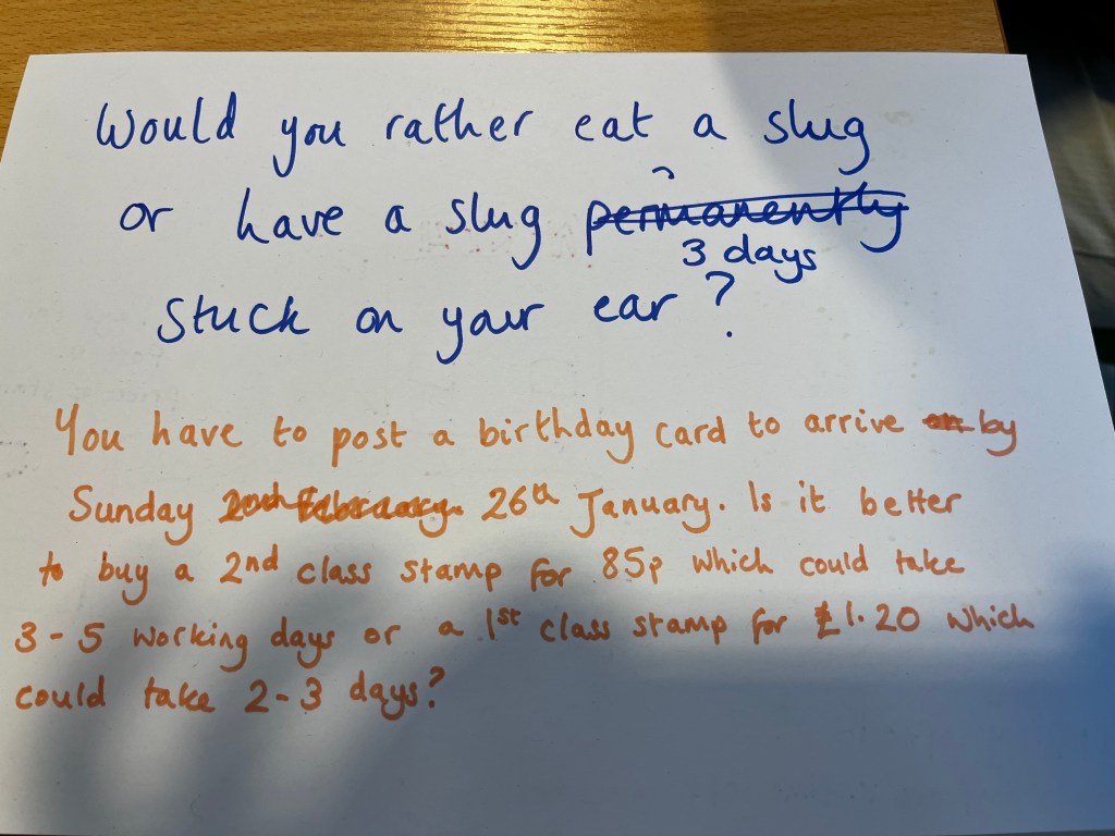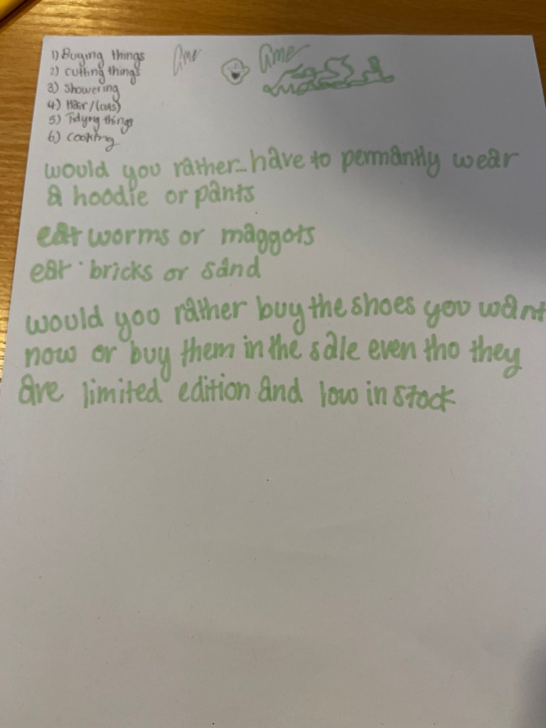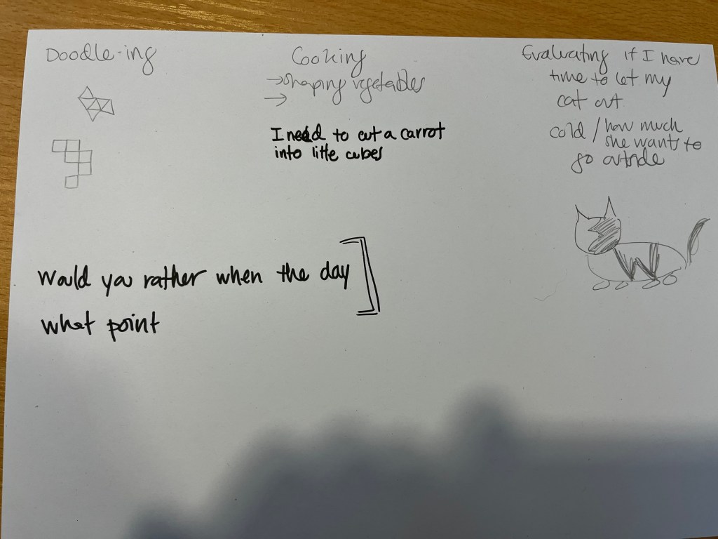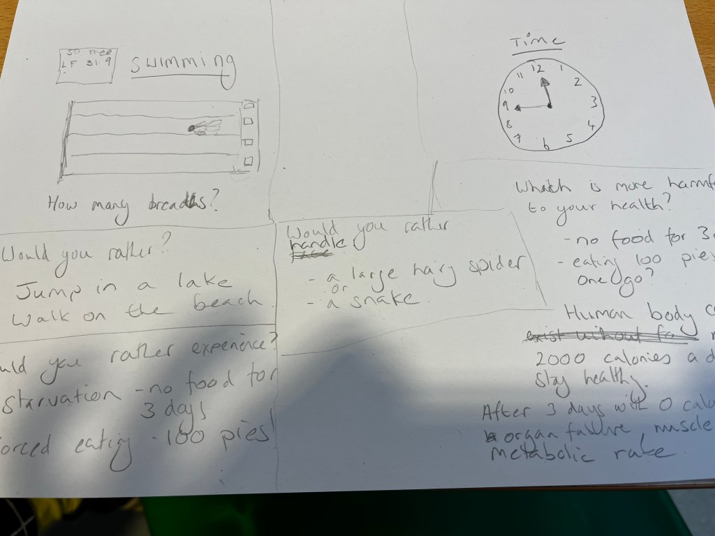 Together we explored the question of whether we do more mathematics than we think? We discussed how mathematical thinking appears in the everyday life of a young person outside the classroom in situations like folding bed sheets, listening to music, timing the journey to school, or planning purchases. These questions were explored through a series of creative tasks, including composing mathematics-themed “would you rather” scenarios and building a collective mathematical playlist.