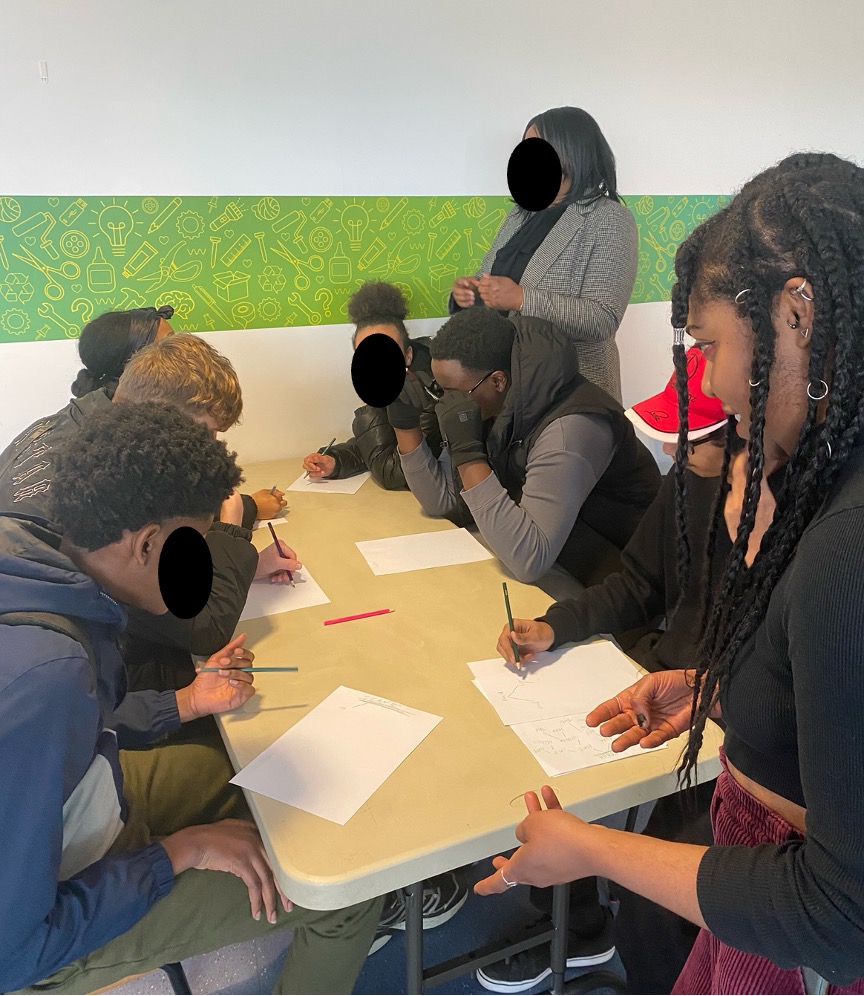 The Very Local Maths team, together with invited artists and mathematics students, co-designed a series of workshops to explore mathematics through creative, collective and interdisciplinary activities. The workshops were developed and facilitated with a group of seven young people aged 13-16 to explore mathematics . These sessions took place as six monthly two-hour sessions at the Moss Side Millennium Powerhouse in Manchester, alongside a field trip to the National Science and Media Museum in Bradford. These sessions are described below.
